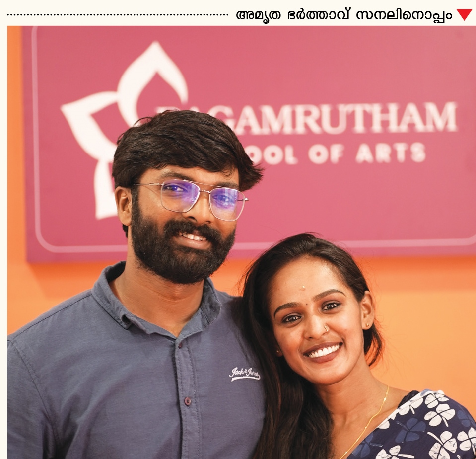 പത്തുവർഷത്തെ അധ്യാപന പരിചയമുണ്ടായിട്ടും എന്തുകൊണ്ട് ഒരു സംഗീതവിദ്യാലയം തുടങ്ങിക്കൂടാ എന്ന് അമൃതയോട് ചോദിച്ചത് ഭർത്താവ് സനലാണ്. അപ്പോഴാണ് അമൃതയും അത്തരമൊരു സാധ്യതയെക്കുറിച്ച് ആലോചിച്ചത്. കഴിവുള്ളവരെ, പ്രത്യേകി ച്ച് കുട്ടികളെ പരിശീലിപ്പിച്ചെടുക്കാൻ ഒരു സ്കൂൾ. അതായിരുന്നു ലക്ഷ്യം. ടെക്നിക്കൽ രംഗത്തുള്ള ഭർത്താവ് സനൽ ജോലി രാജിവെച്ചുകൊണ്ട് അമൃത യ്ക്കൊപ്പം ചേർന്നതോടെ 2024 ഒക്ടോബറിലെ വിജ യദശമി ദിനത്തിൽ ഇരുവരുടെയും സ്വപ്നത്തിന് സാഫല്യമായി. രാഗാമൃതം സ്കൂൾ ഓഫ് ആർട്സ് യാഥാർത്ഥ്യമായത് അങ്ങനെയാണ്.